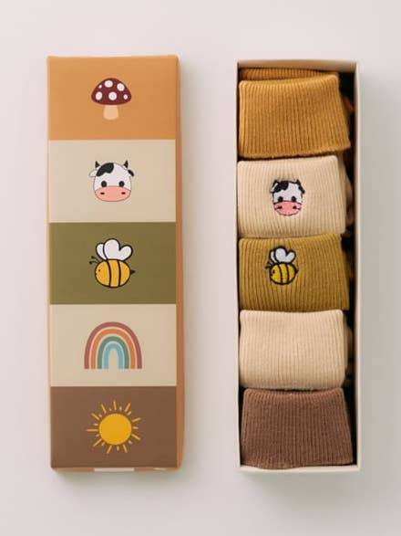 Baby farm pattern socks boxed 5-pack