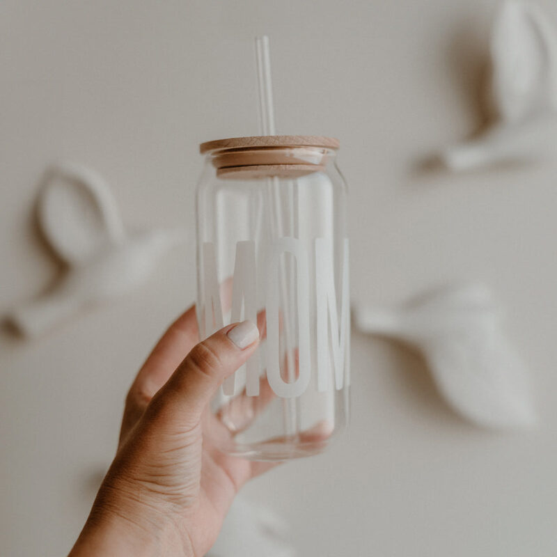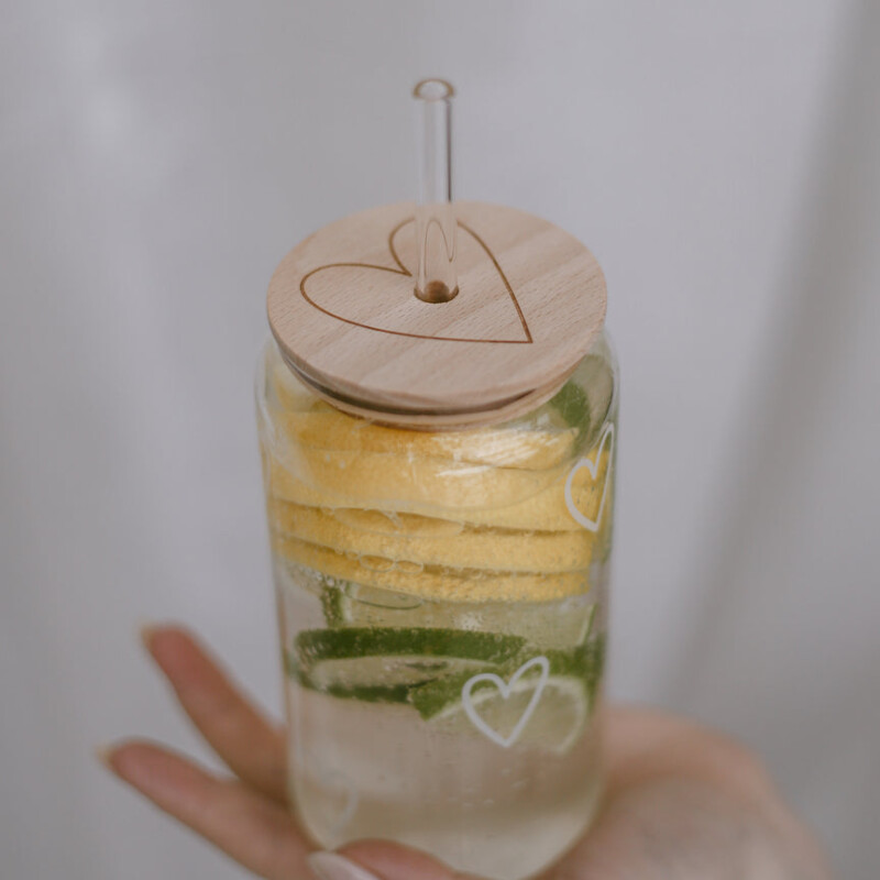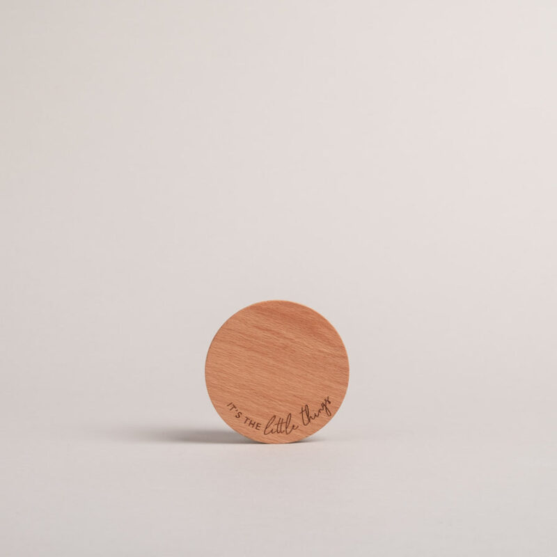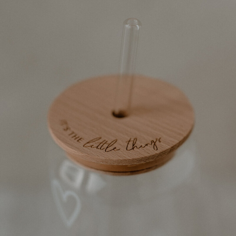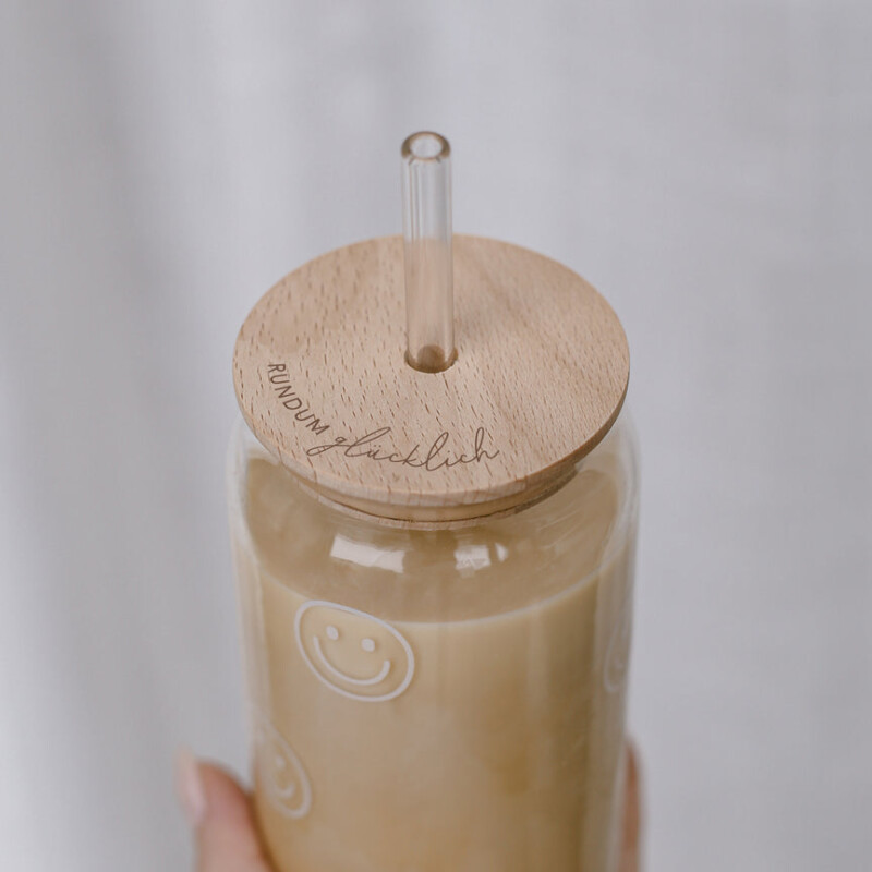 Holzdeckel “Rundum glücklich” für hohes Trinkglas