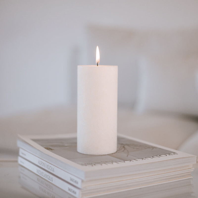 Blockkerze Olive weiss 70×150
