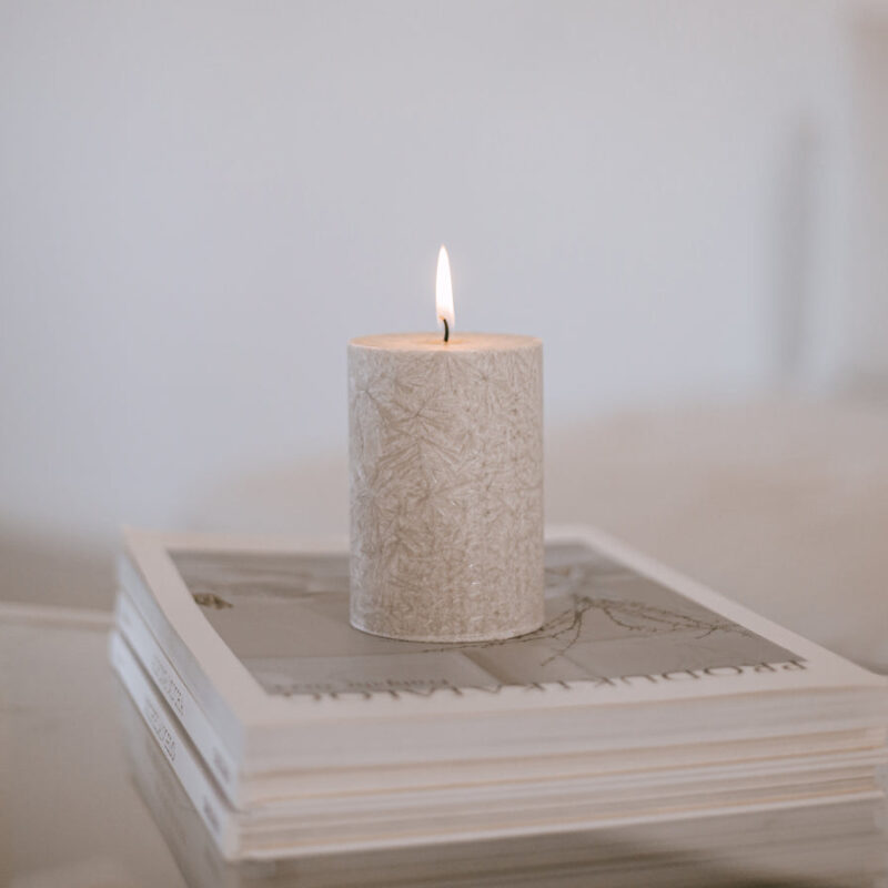 Blockkerze Olive weiss 70×100