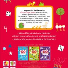 100 knifflige Spiele warten darauf, von dir gemeistert zu werden. Ob Sudokus, Labyrinthe, erstes Zählen oder Schreiben – hier findet jeder Rätselfan die richtige Herausforderung. Schaffst du die 100?