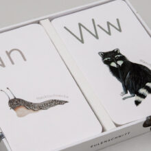 Unsere ABC-Lernkarten sind viel mehr als nur ein Lernspiel – sie sind eine Einladung in eine zauberhafte Tierwelt, in der Lernen und Staunen Hand in Hand gehen. Jedes einzelne Tier wurde mit ganz viel Liebe zum Detail von unserem Designteam in Hamburg per Hand illustriert und anschließend für dieses besondere Kartenset vervielfältigt.