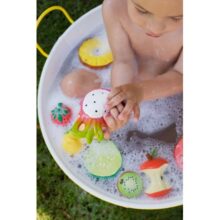 Die Produkte werden sorgfältig aus 100% Naturkautschuk von malaysischen Hevea-Bäumen gefertigt und von Hand mit sicheren, natürlichen Lebensmittelfarbstoffen bemalt. Ohne Löcher, damit keine Feuchtigkeit und Bakterien sich im Innern sammeln können und dadurch absolut sicher für kleine Hände und Münder.