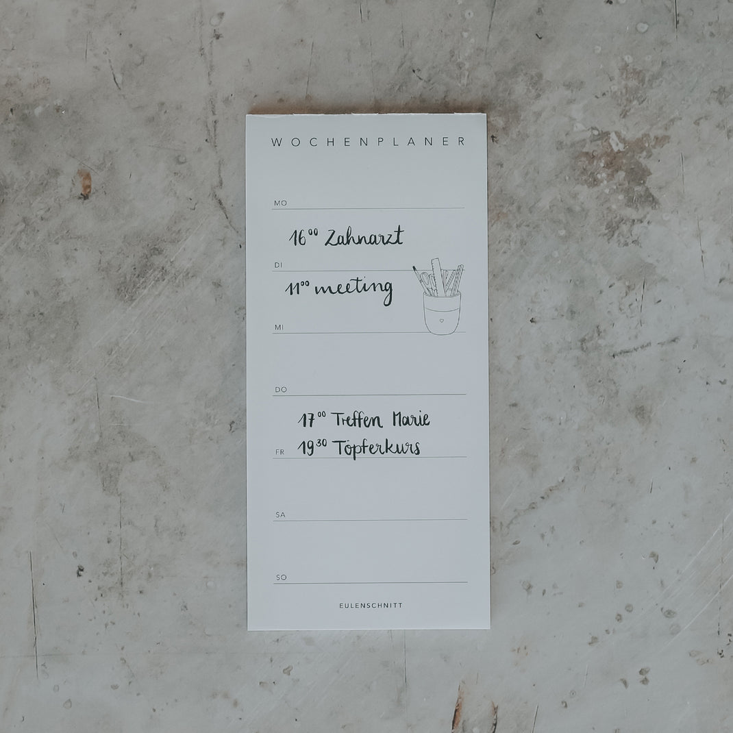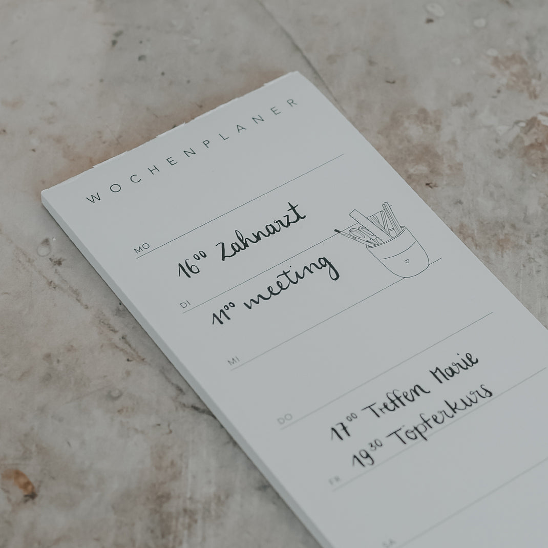Die Blätter sind mit einer stabilen Leimbindung zusammengehalten, die ein einfaches Abreißen ermöglicht. Die Rückseite des Notizblocks ist mit einer stabilen Pappe verstärkt. Das handliche Format von 9,8 x 21 cm bietet genau den richtigen Platz, um all eure Planungen festzuhalten.