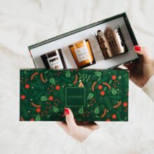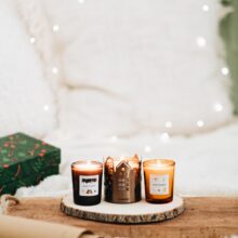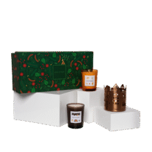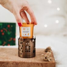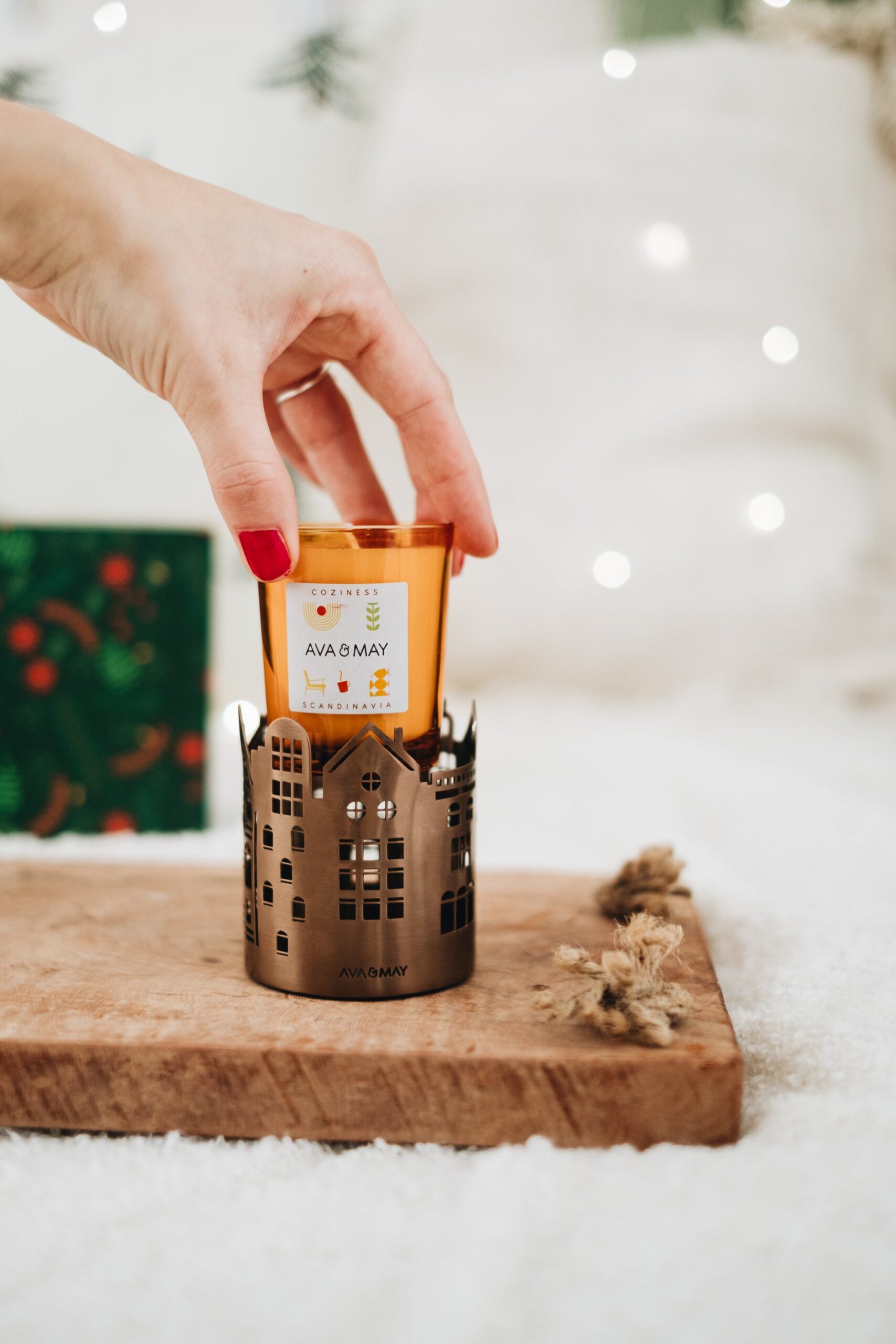 Die Duftkerze ist vegan und aus einer Sojawachs-Mischung, 22 Stunden Brenndauer. Der Kerzenhalter besteht aus Metall.