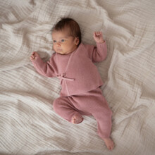 Das Set von Cosy Roots besteht aus einer kuscheligen Strickleggings und dem passenden Bindeoberteil aus Strick in der Farbe Dusty Rose und ist das ideale erste Set für Euren Liebling.