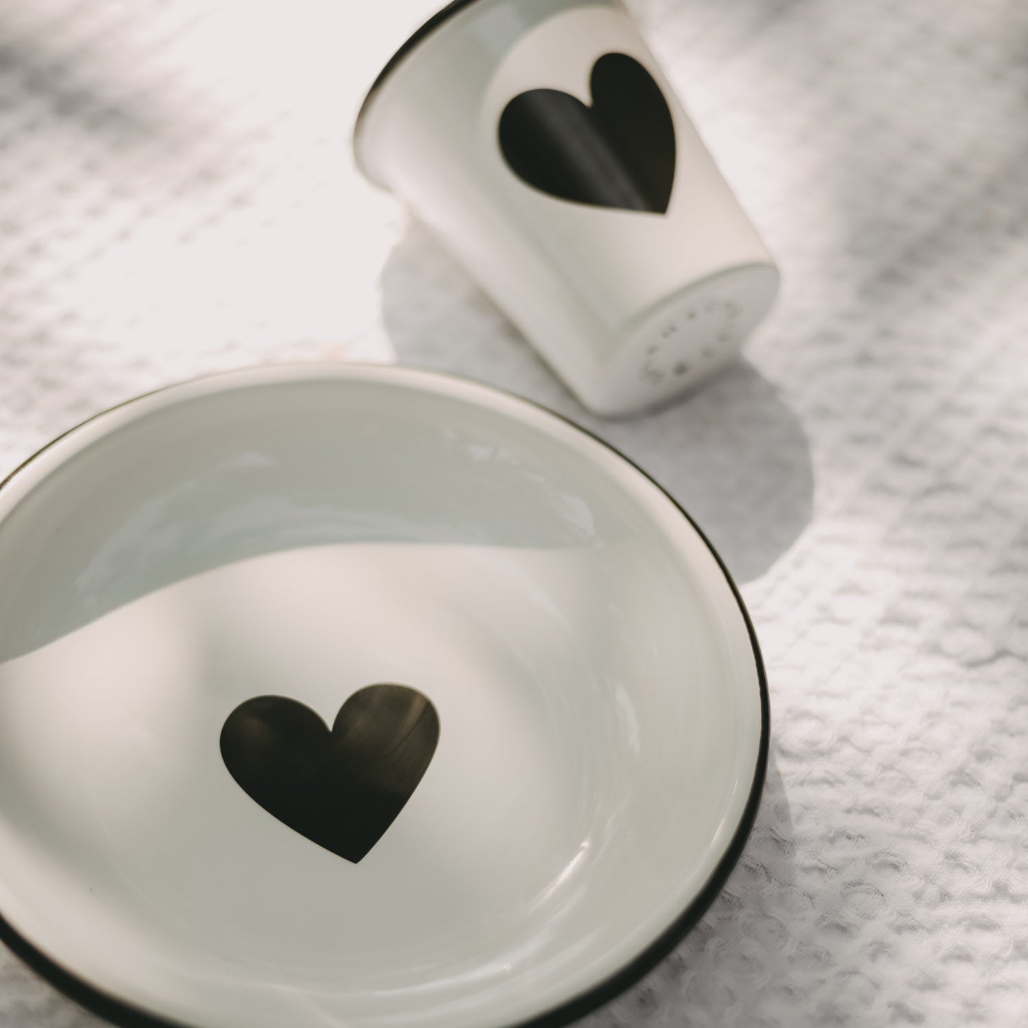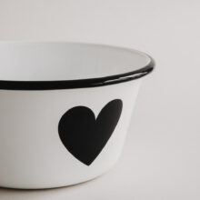 Unsere Emaille Schale Herz ist die perfekte Ergänzung zu deinem Emaille-Geschirr und vereint Funktionalität mit zeitloser Ästhetik. In einem stilvollen Off-White-Farbton gehalten und mit einem dezenten schwarzen Herz verziert, bringt sie schlichte Eleganz auf jeden Tisch.