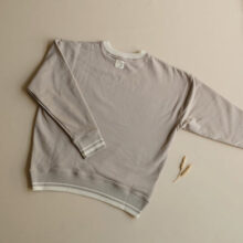 Kuschelig weiches und besonders dickes Sweatshirt aus GOTS-zertifizierter Bio-Baumwolle in der exklusiven Farbe Caramel mit beigen Streifen und dem Cosy Roots Logo auf der Brust bestickt.