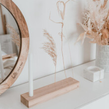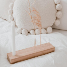 Mit einer Länge von 36 cm ist der hölzerner Kerzenständer eine tolle Idee für deinen Esstisch oder eine Kommode. Auch für die Hochzeitsdekoration und den Geburtstagstisch ist der Blumenständer eine hübsche und minimalistische Dekorationsidee.