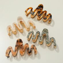 Diese 4-Zoll-Metallkralle mit Kringel ist perfekt für mittleres/langes Haar. Verfügt über eine Metallbasis mit einer Zelluloseschicht auf der Oberseite.