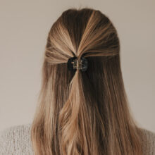 Die handliche Größe macht sie zum idealen Accessoire für verschiedenste Frisuren – ob feines, dickeres oder gelocktes Haar: von Half-Ups bis hin zu kleinen Hochsteckfrisuren sitzt die Spange sicher und bequem.