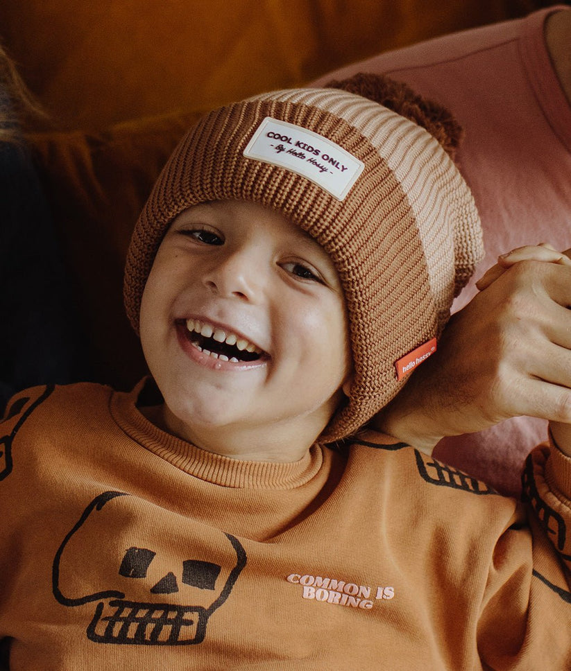 Die Mütze für Kinder und Babys Color Block Coffee gehört zu den Bestsellern bei Hello Hossy®. Erhältlich als Eltern-Kind-Set, das die ganze Familie tragen kann, werden Sie ab einem Alter von 9 Monaten für Freude sorgen. Mit Oeko-Tex-zertifizierter Bio-Baumwolle, Fleecefutter und coolem Bommel – lassen Sie sich verführen!