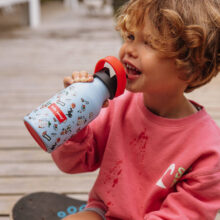 Die Kinder-Thermosflaschen von Hello Hossy® sind zu 100 % für Kids gedacht und geeignet. Sie haben zum Beispiel einen kindgerechten Henkel. Eine eingetragene, in Europa einzigartige Thermosflasche, die mit großer Sorgfalt entwickelt wurde. Diese Thermosflaschen für Kinder passen wunderbar zu unseren Rucksäcken mit Trinkflaschenfach.