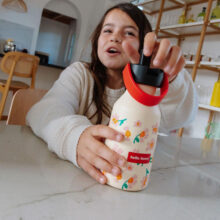 Die Kinder-Thermosflaschen von Hello Hossy® sind zu 100 % für Kids gedacht und geeignet. Sie haben zum Beispiel einen kindgerechten Henkel. Eine eingetragene, in Europa einzigartige Thermosflasche, die mit großer Sorgfalt entwickelt wurde. Diese Thermosflaschen für Kinder passen wunderbar zu unseren Rucksäcken mit Trinkflaschenfach.