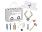 Willkommen beim Arzt! Diese Arzttasche von Jabadabado enthält die gesamte Ausrüstung, die du brauchst, um Familie, Freunde und Haustiere optimal zu versorgen. Man weiss nie, wer vielleicht einen kleinen Arzt braucht. Ihr Kind wird viel Spass mit diesem Arztset haben, das kreatives Spielen fördert und es ermutigt, fürsorglich und hilfsbereit zu sein. Die Arzttasche enthält: 1x Spritze , 1x Stethoskop aus Holz , 1x Thermometer , 1x Salbe , 1x Blutdruckmessgerät , 1x Doktorhut , 1x Medikamentenflasche , 1x Otoskop (Augen- und Ohreninstrument)