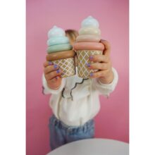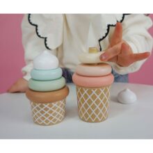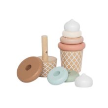 Mischen und kombinieren Sie die Kugeln, fügen Sie einen Klecks Sahne hinzu und kreieren Sie süsse Leckereien. Dieses schön gestaltete Stapelspielzeug aus Holz regt zum kreativen Spielen an und fördert die Feinmotorik.