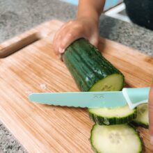 Mit dem Kindermesser lassen sich Gemüse und Co. sicher schneiden – und nicht die Finger!