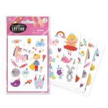Das Tattoo-Kit enthält vier Blätter mit niedlichen Bildern, welche deine Kinder lieben werden und ist sehr einfach zu verwenden. Alle Bilder sind hochwertig und originell. Schneide zuerst das ausgewählte Bild aus, entferne anschliessend die Schutzfolie und trage das Tattoo-Muster auf den Körper auf. Befeuchte die Aussenseite des Tattoos mit einer nassen Serviette und warte etwa 30 Sekunden. Entferne vorsichtig das Paper und lasse das Tattoo trocknen.
