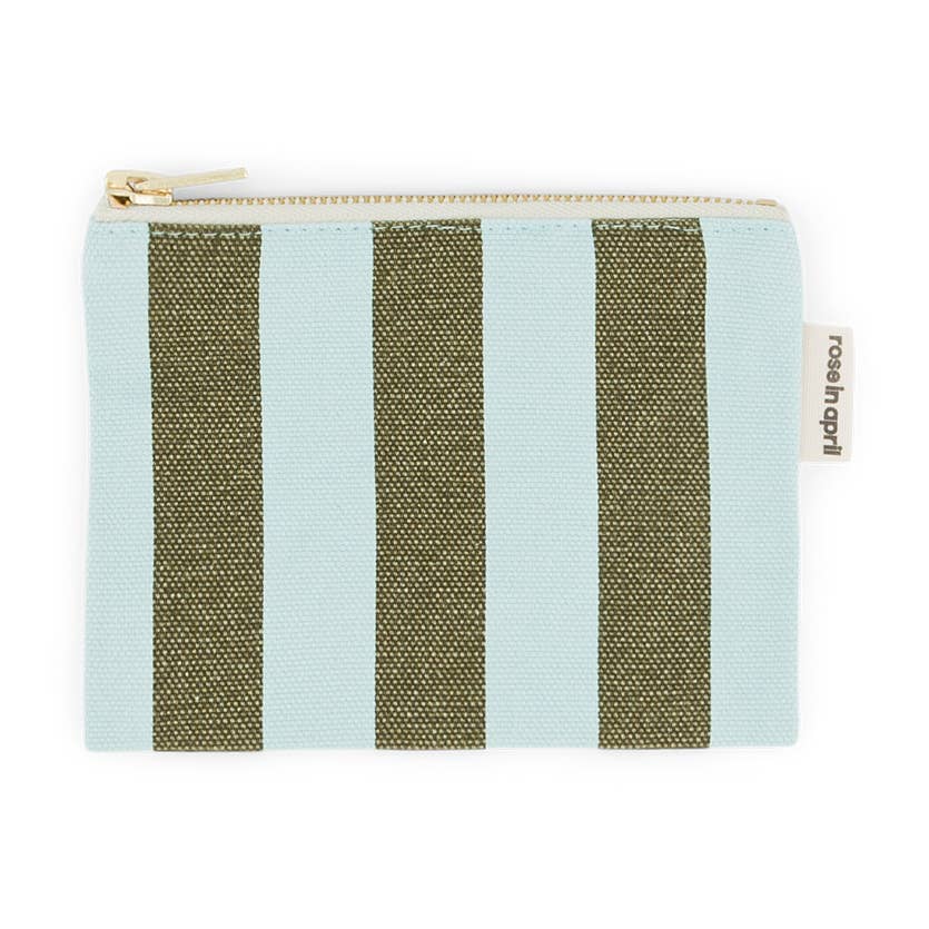 Kompakte Geldbörse aus 100 % Baumwolle mit lässigem Streifenmuster in Aqua und Olive. Der gewaschene Look verleiht ihr eine natürliche, weiche Optik. Innen mit beschichtetem Baumwollfutter – praktisch und pflegeleicht.