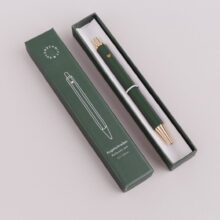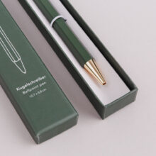 Unser Kugelschreiber Rosmarin überzeugt nicht nur durch seine angenehme Haptik, sondern auch durch seinen wunderschönen, satten Grünton, der an frischen Rosmarin erinnert. Das elegante Design macht ihn zu einem echten Hingucker – ob beim Schreiben kreativer Texte, beim Festhalten deiner Gedanken oder bei Notizen im Meeting.