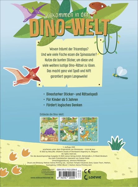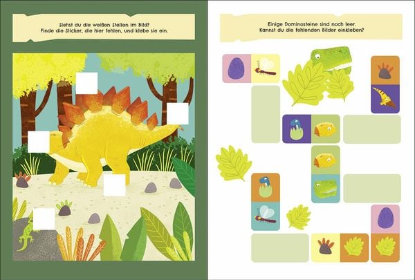 In dieser Reihe dreht sich alles um das beliebte Thema Dinosaurier . Egal, ob beim Malen, Rätseln oder Stickern hier kommen alle Fans der Urzeitriesen ab 5 Jahren ganz auf ihre Kosten. In diesem Rätselblock wollen verschiedene Herausforderungen gelöst werden. Egal, ob Punkt-zu-Punkt , Sudoku , Labyrinthe oder Malen nach Zahlen – Knobeln hilft perfekt gegen Langeweile und fördert gleichzeitig das logische Denken .