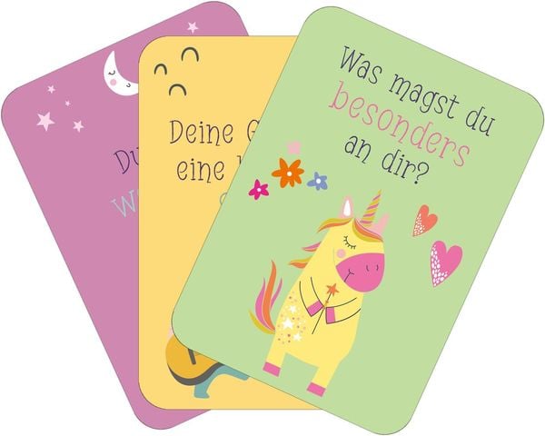 Diese hochwertige Kartenbox enthält 50 liebevoll gestaltete Karten mit bestärkenden Botschaften für Kinder. Perfekt geeignet als tägliches Ritual, das die Eltern-Kind-Beziehung stärkt, oder jederzeit als Unterstützung in schwierigen Situationen. Einfach eine Karte von deinem Kind ziehen lassen oder eine Botschaft auswählen, laut vorlesen und gemeinsam darüber sprechen.