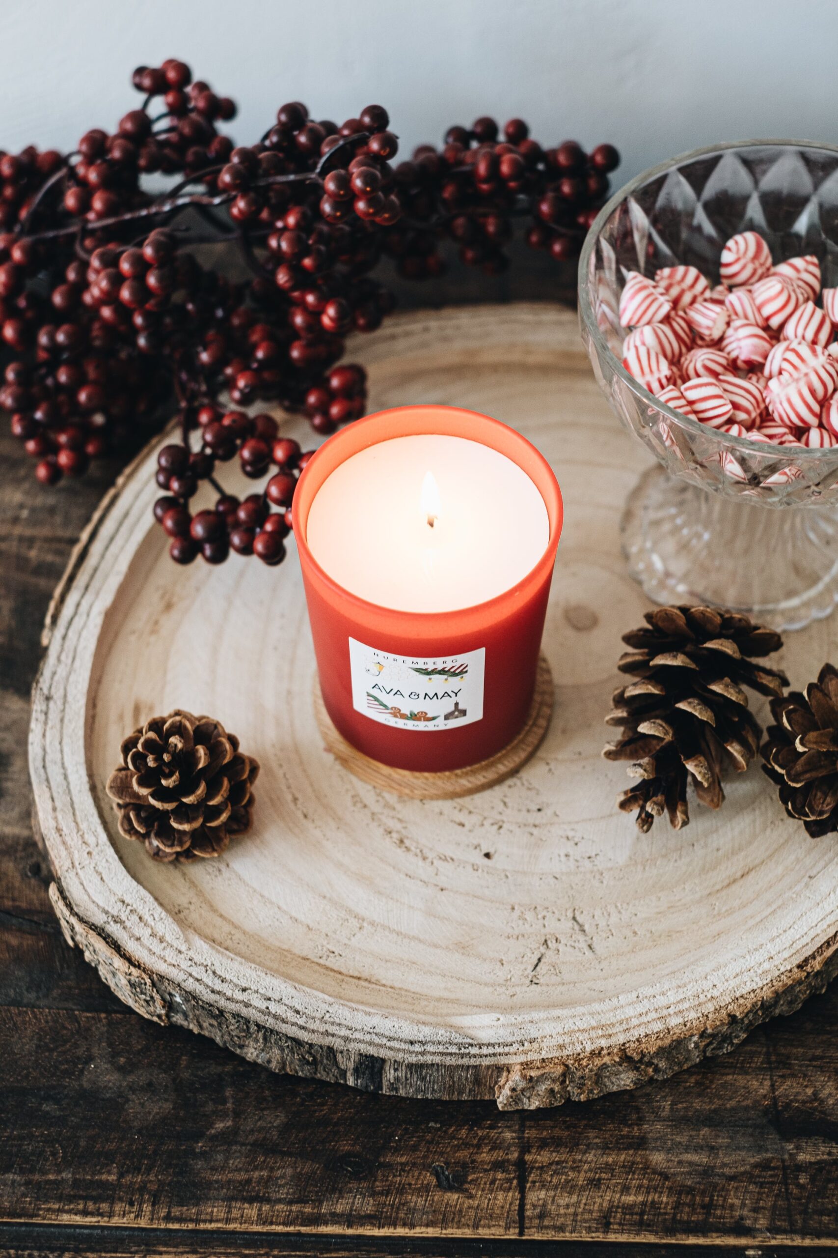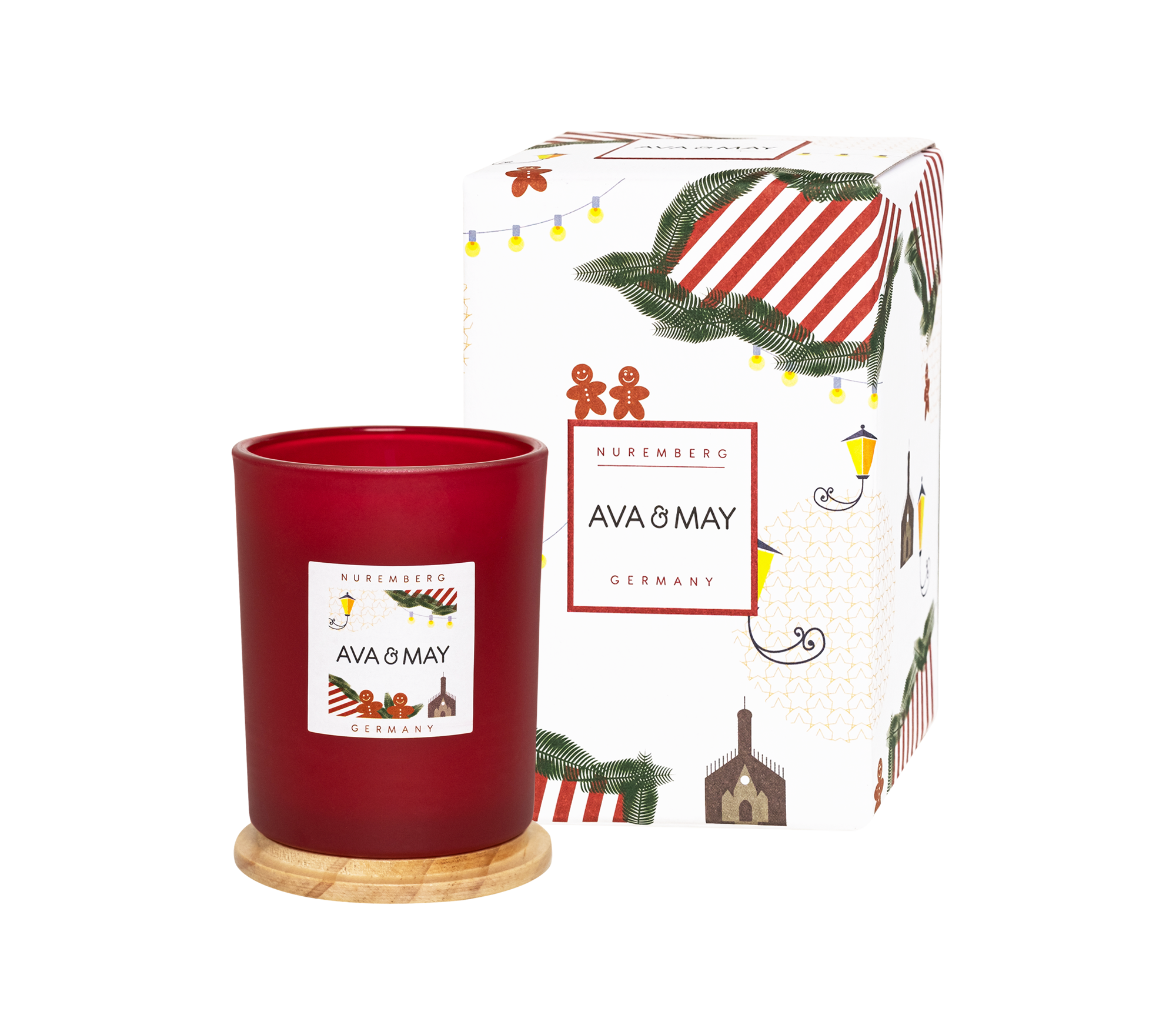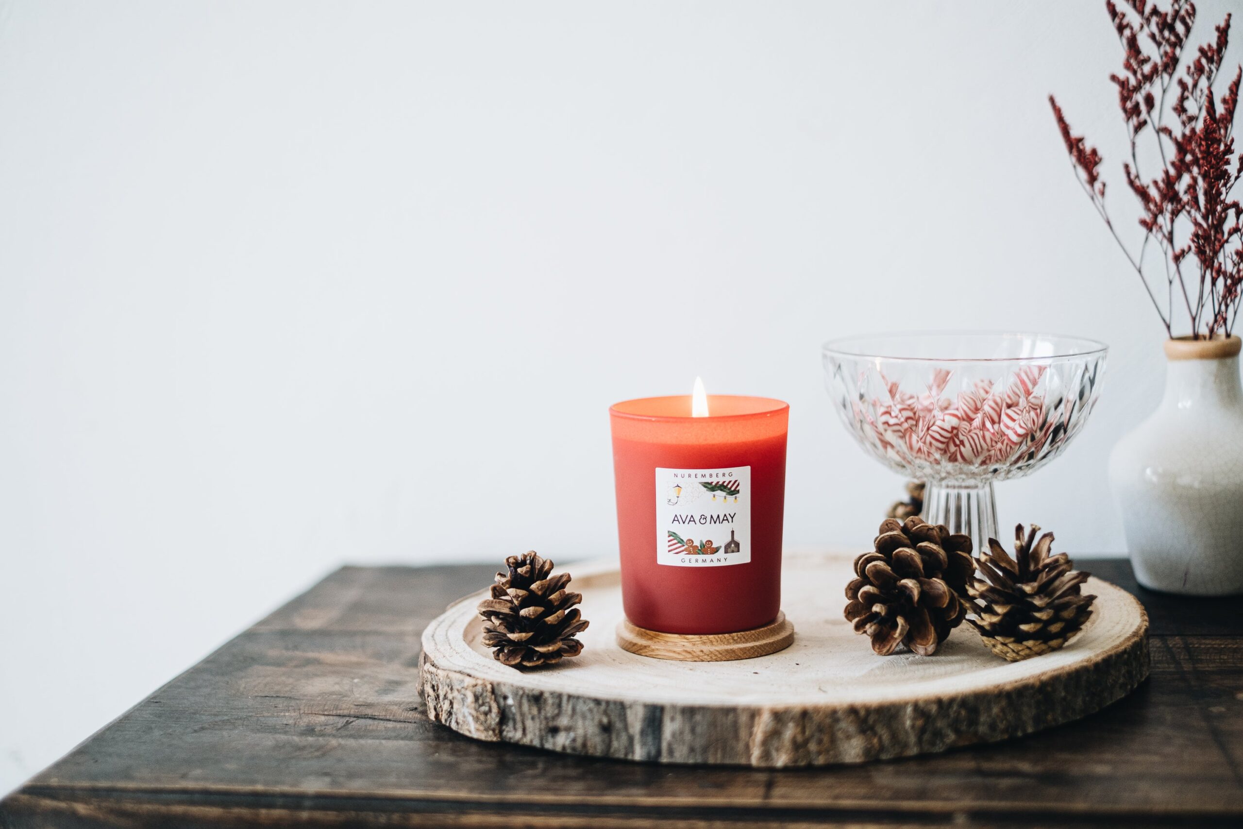 Die Kerze besitzt einen Deckel aus Echtholz. Dieser kann wahlweise als Untersetzer für die Kerze genutzt werden oder um die Kerze zu verschließen. Vegan, Sojawachs-Mischung, 40 Stunden Brenndauer.