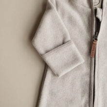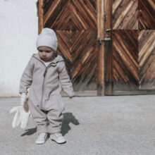 Wunderschöner Fleece Overall aus GOTS-zertifizierter Bio Baumwolle in der Farbe Taupe Melange – ideal für den Frühling, Sommer & Herbst.