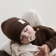 Die Beanie ist aus butterweichem und sehr elastischen Bio Strick, sodass die Mütze mit wächst und Ihr lange Freude daran haben werdet.