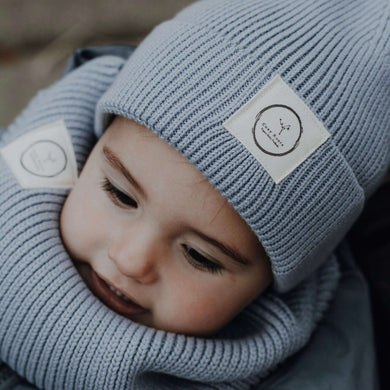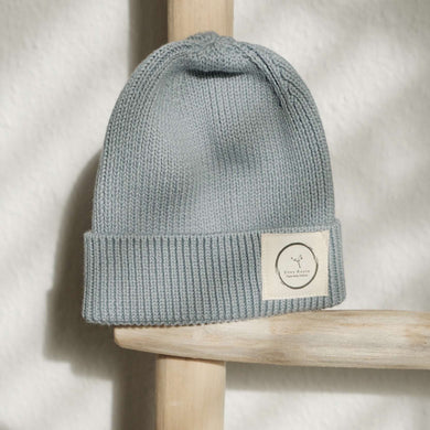 Kuschelig weiche Strick-Beanie aus GOTS-zertifizierter Bio-Baumwolle in unserer exklusiven Farbe Dusty Blue.
