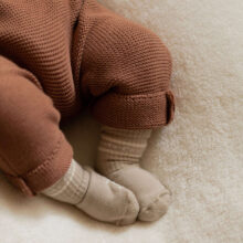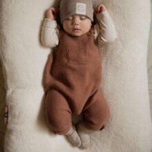 Kuschelig weiche Strick-Latzhose aus GOTS-zertifizierter Bio-Baumwolle in der exklusiven Farbe Walnut.