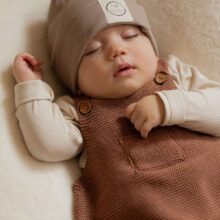 Die Dungarees sind mitwachsend, dank der beiden Knöpfe an den Trägern. Die Länge der Träger lassen sich durch jeweils zwei Knöpfe aus Kokosnuss verstellen – dadurch habt Ihr sehr lange etwas von diesem tollen Strick-Teilchen.