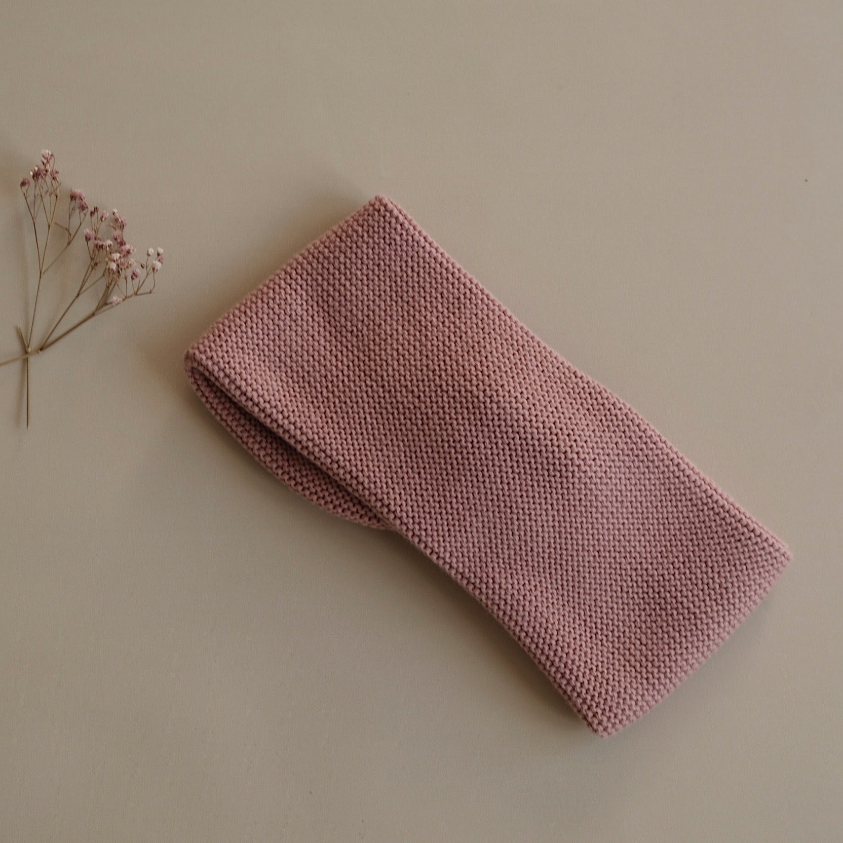 Wunderschönes gestricktes Stirnband aus GOTS zertifizierter Bio Baumwolle in unserer exklusiven Farbe Dusty Rose.