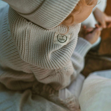 Kuschelig weicher Strick-Schal aus GOTS-zertifizierter Bio-Baumwolle in unserer exklusiven Farbe Sand..