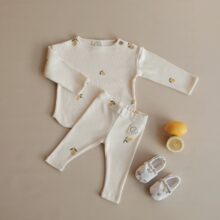 Kuschelig weiche Leggings aus GOTS-zertifizierter Bio-Baumwolle in unserem exklusiven Design Pure Lemon.