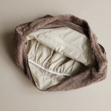 Wunderschöne Mum Bag aus Gots-zertifiziertem Bio Teddystoff in der Farbe Mocha – so kuschelig weich und dazu mit jeder Menge Platz, damit Du alles nötige verstauen kannst.