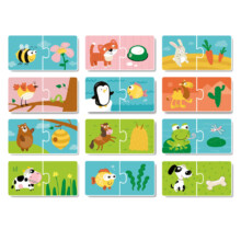 In einer Box befinden sich 12 Puzzles, die aus je zwei Teilen bestehen. Diese Puzzles sind super für kleinere Kinder, denn sie können die 2 passenden Teile finden und diese zusammenstecken. Sie sind für Kinder ab 3 Jahren geeignet.