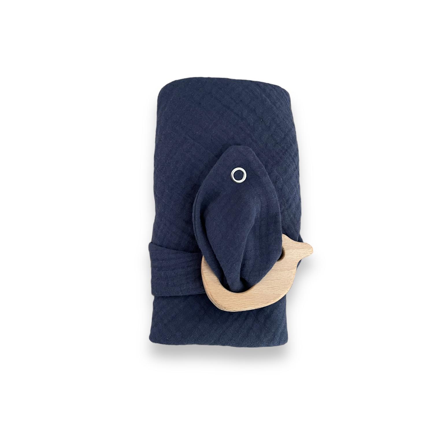 Weiches Schmusetuch aus zweilagigem Musselin mit Holzgreifling, beruhigt das Baby und schafft eine emotionale Bindung.