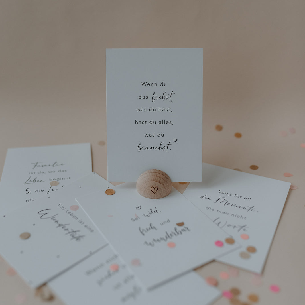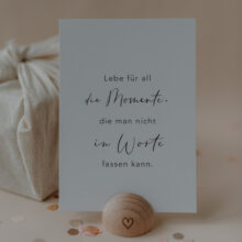 Unsere Spruchkarte Momente wurde von uns handgeschrieben und dann digitalisiert. All unsere Drucke werden auf hochwertigem, matt lackiertem 400g Premium Papier gedruckt. Die Rückseite ist blanko mit einem kleinen Eulenschnitt-Logo verziert, sodass man noch viel Platz zum Beschreiben der Karte vorfindet.