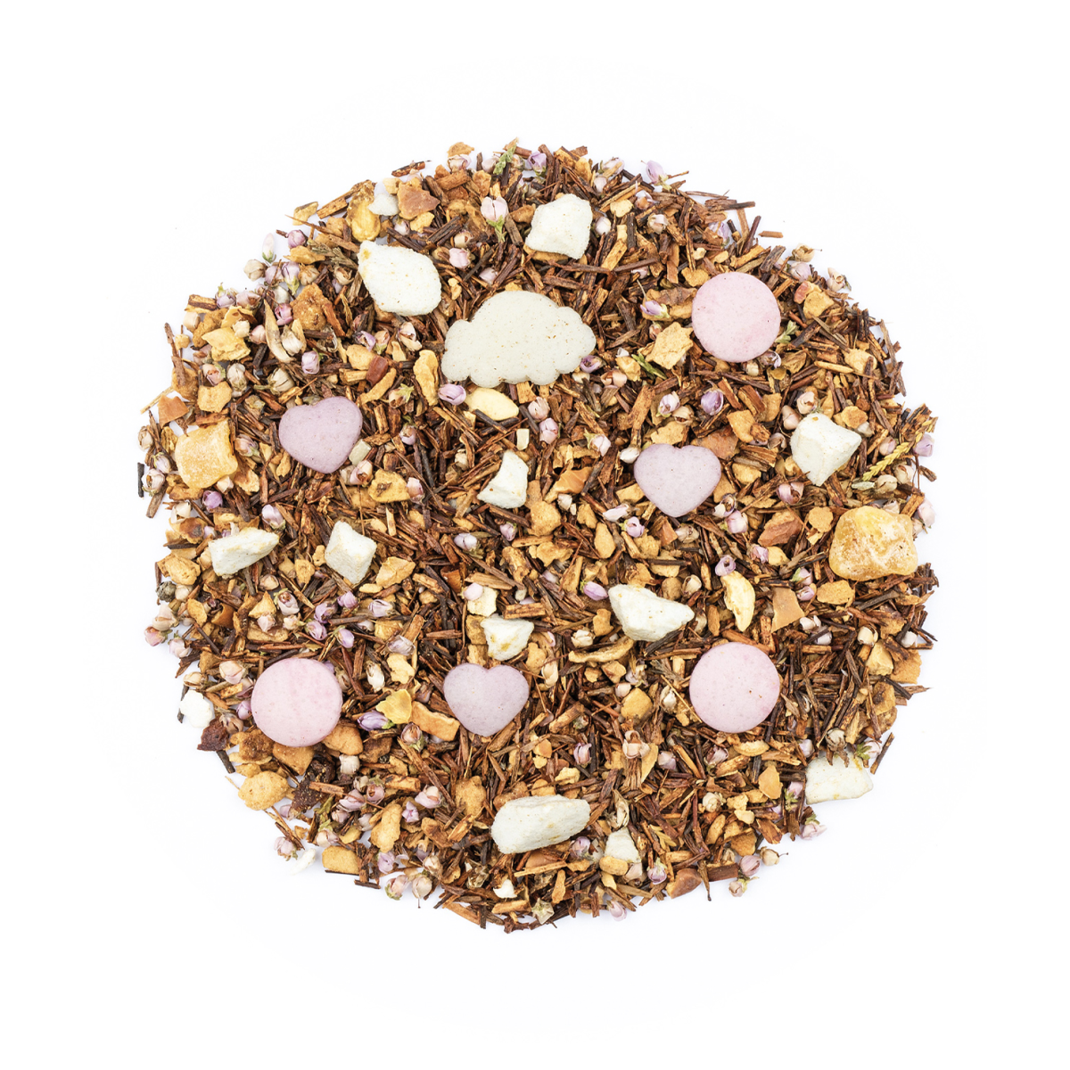 Süß, fröhlich und zum Feiern schön – dieser Tee ist wie ein Stück Glück in der Tasse. Zarte Roibusch-Noten treffen auf fruchtige Grenadine, glasiertes Zuckerdekor in Wolken- und Herzform bringt den Geburtstagszauber, und rosafarbene Heidekrautblüten sorgen für ein liebevolles Funkeln. Ein kunterbunter Glückwunsch zum Aufbrühen – für große und kleine Geburtstagskinder.