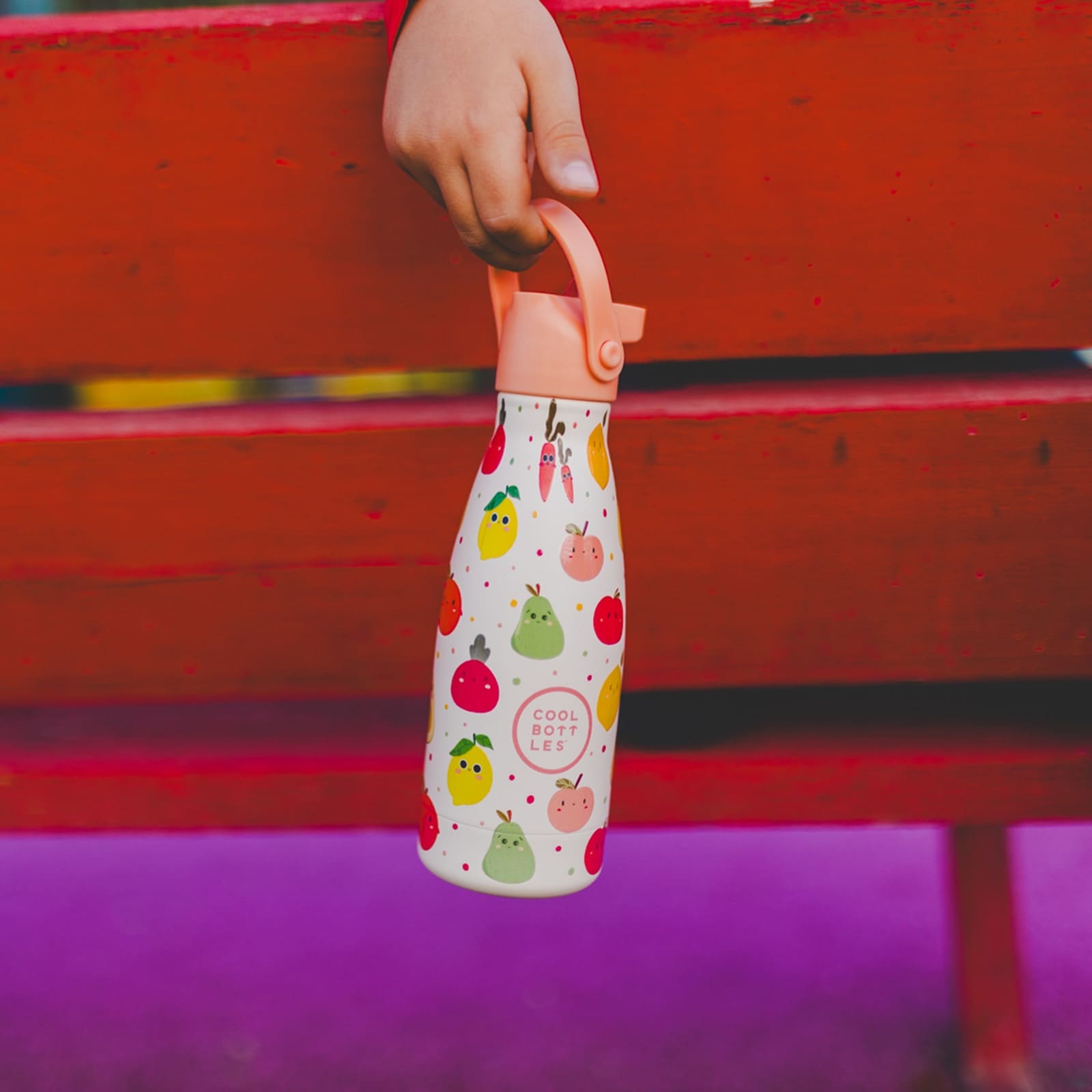 Die Edelstahlflasche hält Getränke für Kinder ideal warm oder kalt. Ihr Design, inspiriert von der Tierwelt, wird sie immer begleiten. Cool Bottles™ machen den Unterschied und sind die perfekte Lösung für die Flüssigkeitszufuhr der Kleinen. Dank der einzigartigen Triple Cool™-Technologie mit dreifacher Schicht geniessen die Kleinen 36 Stunden lang kalte Getränke oder bis zu 18 Stunden lang heisse Getränke. Die Flasche wird mit zwei verschiedenen Verschlüssen und einem absolut luftdichten Verschluss geliefert, sodass sie im Rucksack transportiert werden kann. Sie ist besonders gesund, da sie aus hochwertigem 18/8 lebensmittelechtem Edelstahl gefertigt und vollständig BPA-frei ist. Dieses Material ist äusserst hochwertig und nimmt weder Geschmack noch Geruch an. Sollte nur von Hand gewaschen werden.