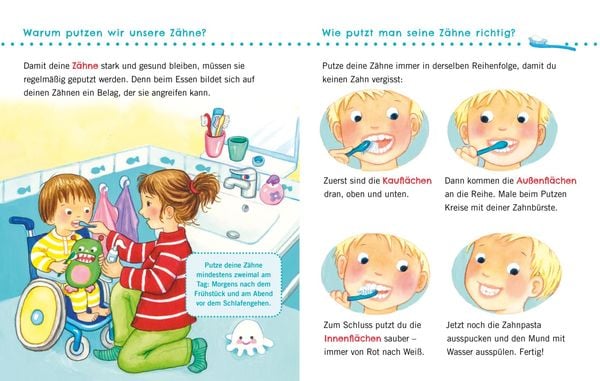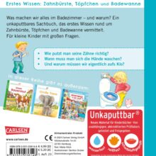 Rund um Zahnbürste, Töpfchen und Badewanne gibt es viele Fragen: Wie putzt man seine Zähne richtig? Wann muss man sich die Hände waschen? Und warum müssen wir eigentlich aufs Klo? Ein unkaputtbares Sachbuch für Kinder ab 2 Jahren, das spielerisch erstes Wissen rund um die Körperpflege vermittelt – mit leicht verständlichen Texten und liebenswerten Illustrationen.