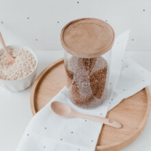 Wir können nicht glauben, wie schön man seine Vorräte aufbewahren kann mit unseren Vorratsgläser aus Glas. Alle Gläser bestehen aus hochwertigem und strapazierfähigem Borosilikatglas und sind mit einem weissen Druck veredelt. Sie werden mit einem Akazienholz Deckel geliefert, der das Eulenschnitt-Logo und das Motto ‘Konfetti für die Seele’ eingraviert hat. Borosilikatglas ist ein sehr robustes Material, das spülmaschinenfest und zu 100% recyclebar ist. Die Deckel werden aus unbehandeltem Akazienholz gefertigt, sodass jeder Deckel ein Unikat ist und einzigartig in seiner Struktur. Ein Silikonring zum luftdichtem Verschließen ist natürlich auch mit dabei.