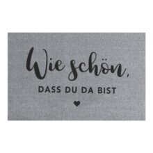 Die waschbare Fußmatte Wie Schön zaubert deinen Gästen garantiert ein Lächeln ins Gesicht! Die fein geschwungenen und handgeschriebenen Schriftzüge verleihen den Fussmatten einen sehr edlen Touch. Die Oberfläche besteht aus High Twist Polyamid-Fasern, die durch die gedrehte Struktur sich besonders angenehm und weich anfühlt. Die Rückseite besteht aus rutschfestem PVC, was die Fußmatte sicher an ihrem vorgesehenen Ort fixiert. Das Format von ca. 75 x 45 cm ist ideal für den Eingangsbereich!