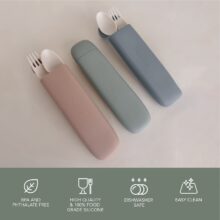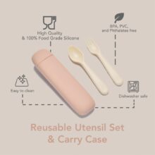 – Praktisches Design – Eine schlanke, 100 % Silikon-Tragetasche, die die Gabel und den Löffel Ihres Kindes sauber und tragbar hält