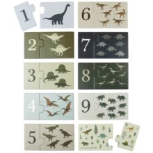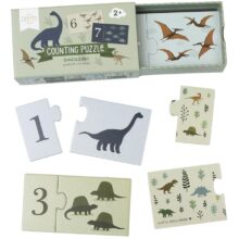 Mit diesem lustigen Dinosaurier Zahlenpuzzle lernst du, von eins bis zehn zu zählen. Das Set besteht aus 10 einzelnen Puzzles. Ein Puzzleteil zeigt die Zahl und das andere die Anzahl der Waldfreunde, die zu dieser Zahl gehören. Sie sind lehrreich und unterhaltsam und bestehen aus dickem Karton, so dass kleine Hände sie leicht handhaben können. Die Puzzles werden in einer praktischen Schiebebox geliefert, die eine einfache Aufbewahrung ermöglicht.